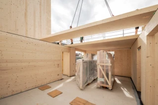 Im Rahmen der Planung zweier Holzhochhäuser in Wolfsburg haben wir zwei Forschungsprojekte auf den Weg gebracht. Derzeit untersuchen wir über die Deutsche Bundesstiftung Umwelt (DBU) zusammen mit ee concept, CAALA und dem Natural Building Lab der TU Berlin, wie eine regenerative Energieversorgung, kreislauffähige Konstruktionsweisen und planungsbegleitende Ökobilanzierung im Gebäudebereich möglich sind.