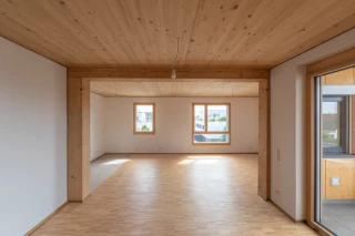 Das 4-geschossige Mehrfamilienwohnhaus mit 10 Wohnungseinheiten wurde in einer massiven Holzbauweise aus nicht verleimten Brettsperrholzwänden und Brettstapeldecken errichtet. Dabei wurden zum großen Teil Hölzer aus dem stiftungseigenen regionalen Forstbetrieb verwendet.