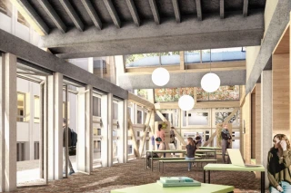 - Neben den Ausstattungsmaterialien und den nichttragenden Bauteilen, erfährt die Primärkonstruktion eines Gebäudes aus den 1950er Jahren, das im Sinne einer linearen Wertschöpfung entworfen und gebaut wurde, durch geordnetes Zerteilen in transportable Bauelemente ein „Systemupgrade“. Durch diese Strategie wird nicht nur ein Downcycling-Prozess vermieden. Im Gegenteil: aus einem linearen Baustoff entstehen zirkuläre Gebäudekomponenten. Die Ortbeton-Stützen und -Träger, sowie die Rippendecken, werden zu wiederverwendbaren Bauelementen.