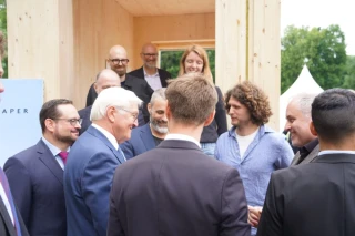 - 04-06-2024The Woodscrapers - our high-rise buildings with wooden structures - are becoming more and more of a reality and we were able to show this at the Environment Week, which ended on Wednesday. We are all still inspired by the many impressions and conversations in the park of Bellevue Palace. A highlight of the event for us was of course the visit of Federal President Frank-Walter Steinmeier to our 1:1 model. We see this attention as a real appreciation of our efforts to build sustainably.