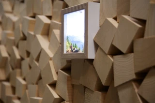 But the wooden logs are not just stacked any which way. The 15.5-metre-long stack of wood consists of precisely cut logs neatly positioned in the shape of the topography of the Murg Valley. Visitors can walk alongside the profile of the Murg Valley, touch it and learn about the geographical context of the surrounding area. The stacked firewood is sourced from the local forest. Together with tourism director Patrick Schreib, the white fir trees were taken from the surrounding forests by the Züfle sawmill.
